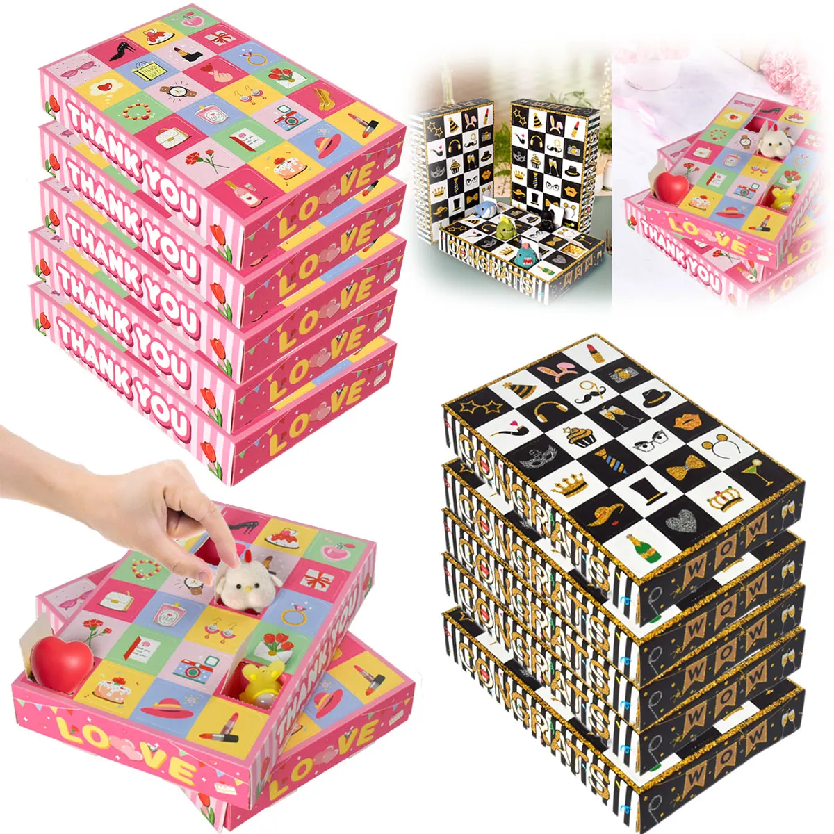 10 Pack Pink Advent Calendar Boxes or 10 Pack Black Golden Advent Calendar Boxes