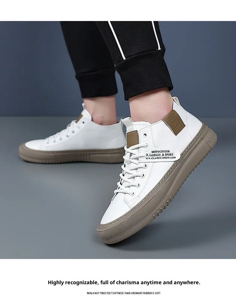 Men’s Sports Casual Leather White Shoes